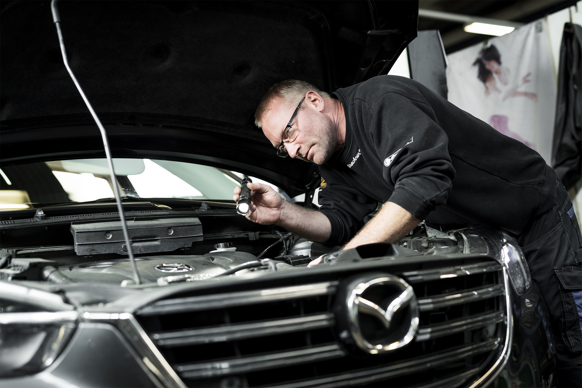 - En certificeret Mazda-tekniker udfører arbejdet på din bil